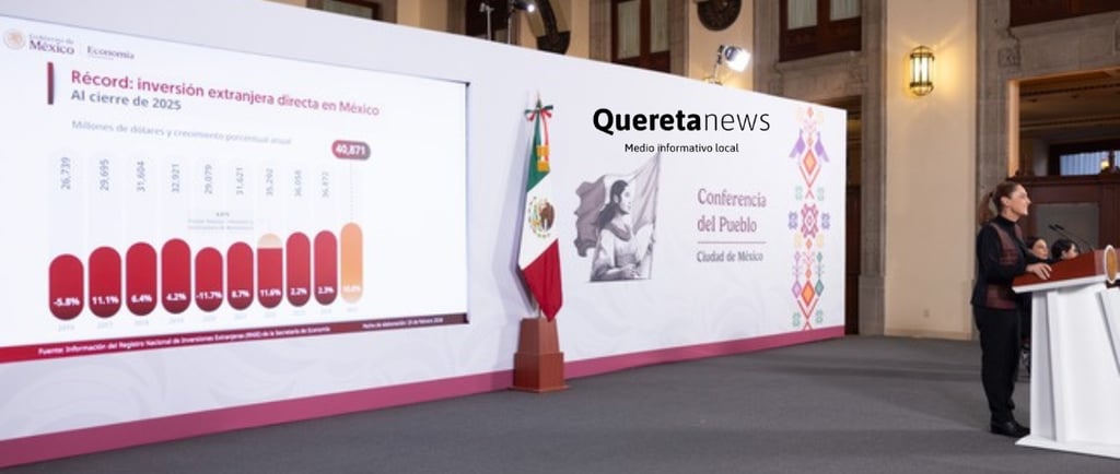 La Presidenta Claudia Sheinbaum Pardo resaltó que México alcanzó una cifra histórica de Inversión Extranjera Directa (IED) en 2025 al recibir 40 mil 871 millones de dólares, lo que representa un crecimiento de 10.8 por ciento respecto a 2024, la cifra más alta registrada en un ejercicio anual, lo que refleja que México va bien, la confianza en el país y que el modelo económico de la Cuarta Transformación da resultados.