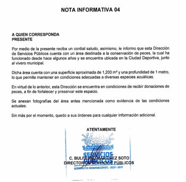 De acuerdo con un comunicado de la administración del complejo, el Instituto Municipal de Cuidado Animal (IMCA) de Corregidora realizó una inspección el pasado 20 de febrero de 2026. Tras la revisión, la autoridad determinó que tanto los peces como el estanque se encontraban en condiciones generales adecuadas y que no se detectaron indicios de maltrato, negligencia o riesgo inmediato para los animales.
